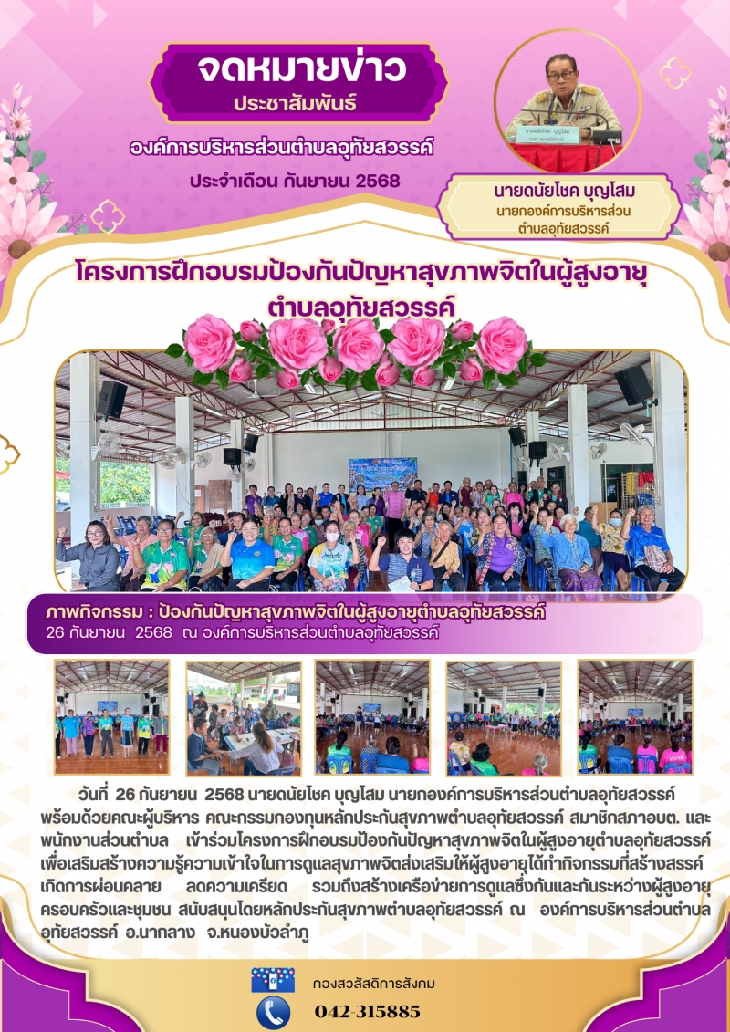 โครงการฝึกอบรมป้องกันปัญหาสุขภาพจิตในผู้สูงอายุตำบลอุทัยสวรรค์...