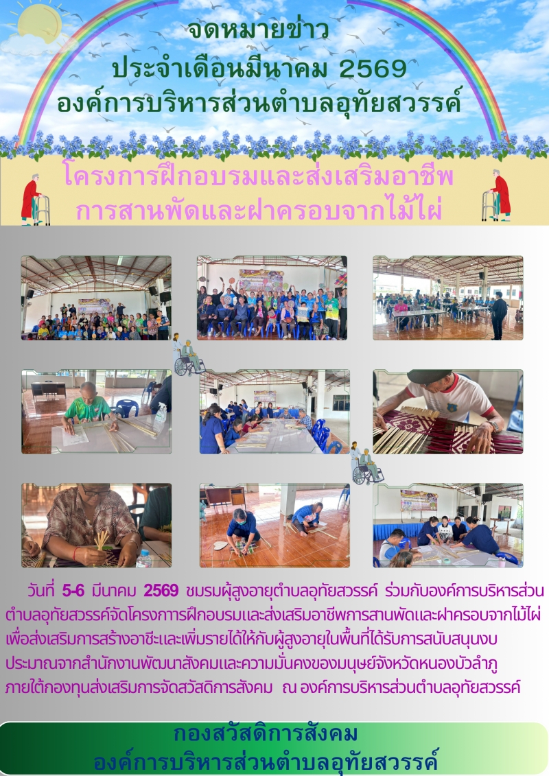 กิจกรรมการส่งเสริมกลุ่มอาชีพผู้สูงอายุตำบลอุทัยสวรรค์ ในโครงการ "หน่วยบำบัดทุก บำรุงสุข สร้างรอยยิ้มให้ประชาชน" ประจำปีงบประมาณ 2569...