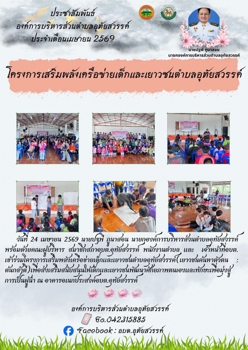 โครงการเสริมพลังเครือข่ายเด็กและเยาวชนตำบลอุทัยสวรรค์...